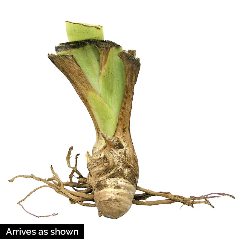 A blend of soft yellow-white falls, gracefully edged in a rich burgundy purple and complemented by apricot standards with delicate purple veining.