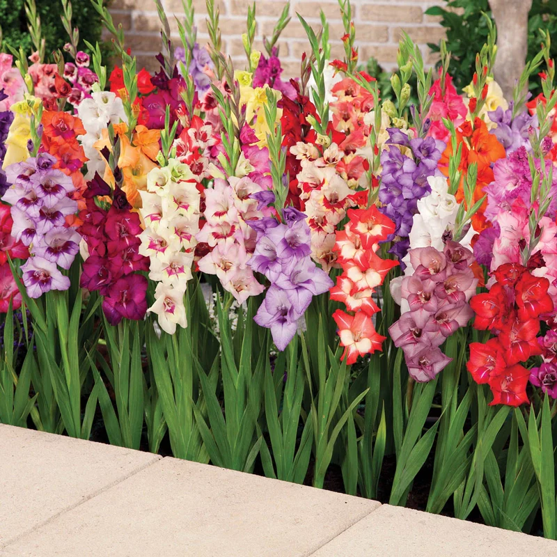 These glads bloom earlier, more profusely and over a longer period than ordinary glads…yet need no staking! Each top-quality bulb will produce up to 20 richly coloured, full-size blooms of red, purple, peach, pink or white, with flowering lasting up to 19 days! Plant them in borders, pots and even window boxes. Enjoy new blooms every 2 weeks all summer—buy 100 bulbs and stagger their planting times. Glaminis are also fabulous in a vase! Varieties are not individually labeled. (Pot not included)